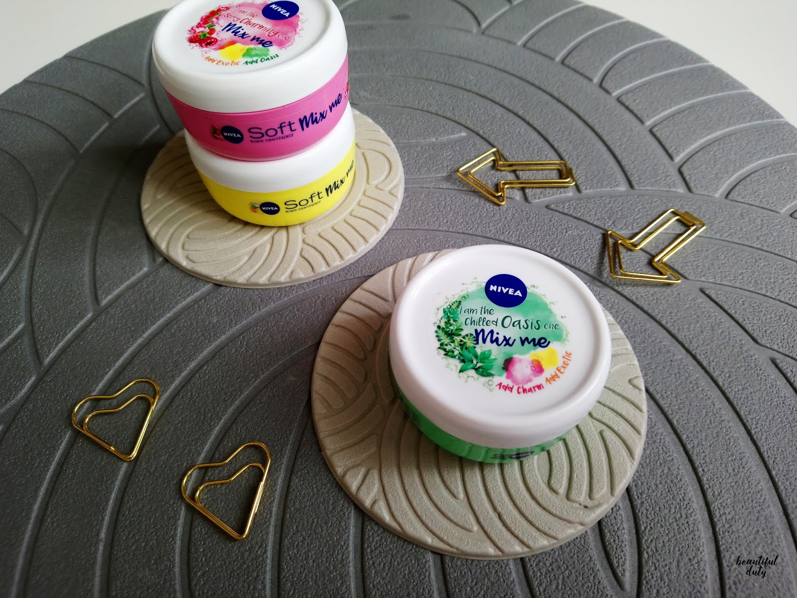 Tak właśnie prezentują się moje podróże małe i duże, w które zabierają mnie kremy z Nivea Soft Mix Me. Każdy inny, każdy tak samo oryginalny, specyficzny i niezwykle intrygujący. Dopełniają się bardzo, co prawda ja kremów ze sobą bezpośrednio nie mieszałam, ale lubię na ciało nałożyć żółty, na twarz zielony, a na dłonie różowy. Wtedy jestem otulona każdym zapachem, który przypomina o sobie z każdej możliwej strony. Nie jest nudno, a pięknie, letnio i intensywnie!